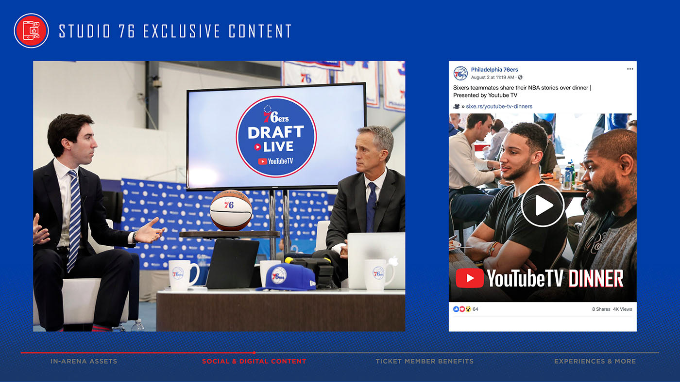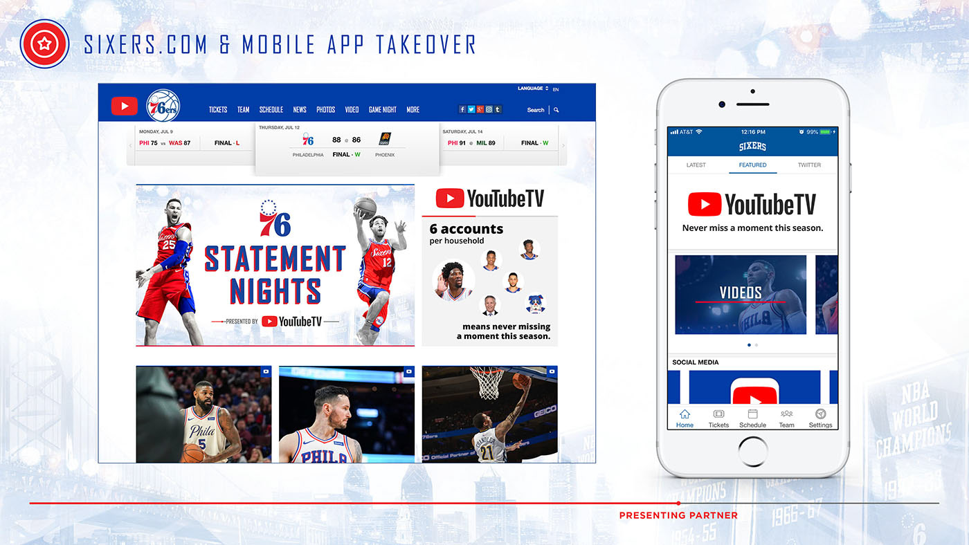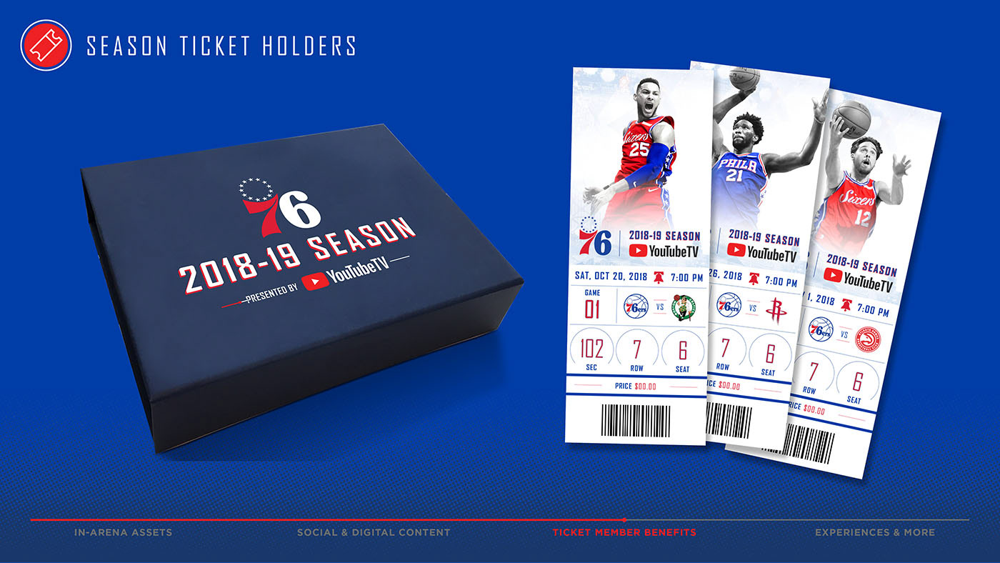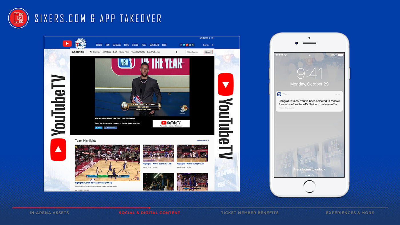 Below are slides that were featured in the 76ers pitch to Youtube TV to become the presenting sponsor for the 2018-19 season. Additionally, all creative elements and deck flow were designed by me. To take a closer look, click on an image to enlarge.